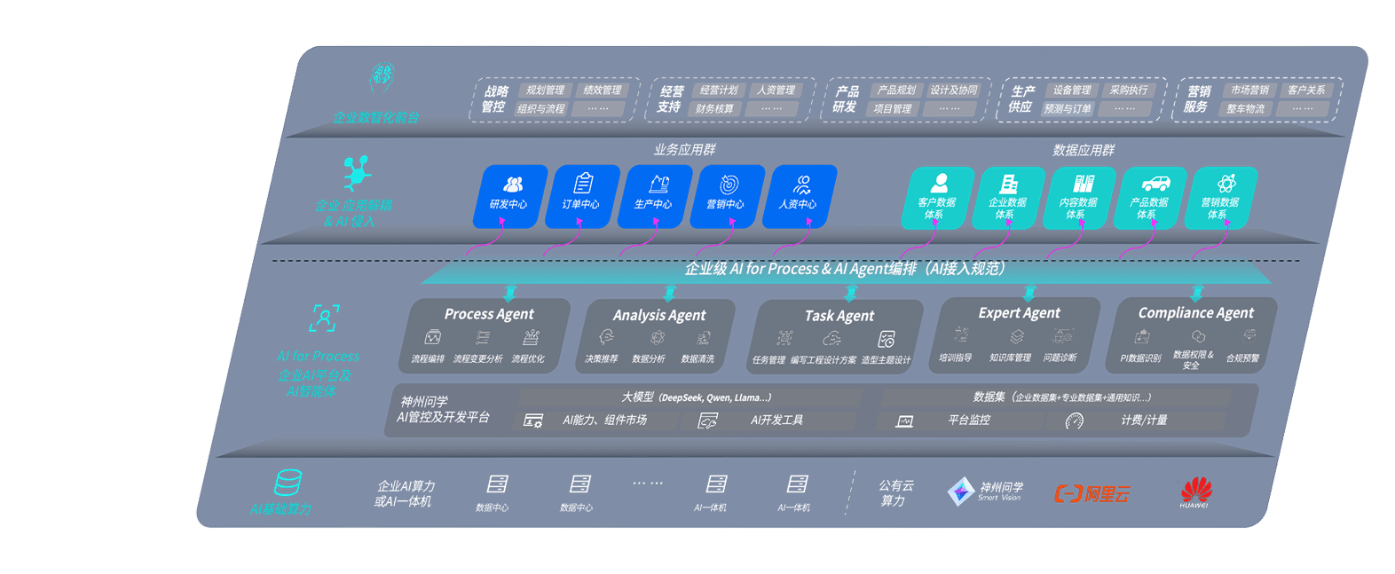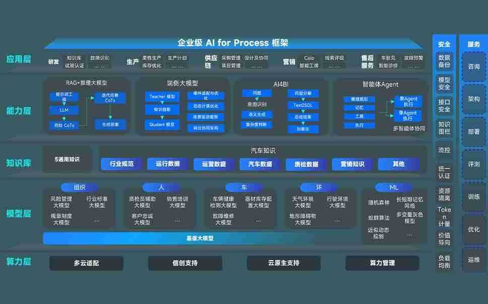 端到端的一站式AI工作空间深度融合了从企业战略规划到日常经营的全流程业务板块,,,,定向解决车企内部领域多、、、部门多、、链条长、、场景碎片化等难题,,,,支持车企快速构建以AI为核心的生产力写作体系,,,,实现任务执行与AI能力的无缝集成与交互